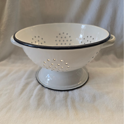 Let op: Dit emaille vergiet kan wat zwarte stukken/vlekken in de verf en onderop de voet hebben. Dit zit in het emaille gebakken. Dit zijn geen beschadigingen. Emaille is handwerk en kan soms wat oneffenheden bevatten. Helaas hebben wij hier geen invloed op.