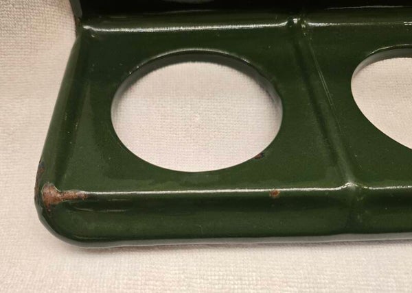 Het rekje heeft bij de gaatjes aan de voorkant en aan de achterkant wat roest. Dit heeft geen invloed op de stevigheid van het rekje. Het rekje heeft op de hoeken aan de onderkant wat beschadigingen. Op de onderkant waar de bakjes in vallen, bevat wat roest. Dit heeft geen invloed op de stevigheid van het rekje. In het midden bij de hoeken zit een beschadiging.