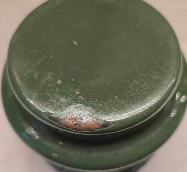Het ´zand´ bakje heeft rondom de rand in het midden wat lichte beschadigingen. Er zit een beschadiging op de onderkant van het bakje. Aan de binnenkant en op de rand zitten een aantal beschadigingen. Het ´zeep´ bakje heeft rondom de rand in het midden lichte beschadigingen. Er zit een beschadiging aan de onderkant. Aan de binnenkant en op de rand zitten een aantal beschadigingen. Het soda bakje heeft wat waas aan de zijkant. Aan de binnenkant zit een wat grotere beschadiging. Aan de binnenkant en op de rand zitten een aantal beschadigingen. Op de onderkant zitten er meerdere beschadigingen.