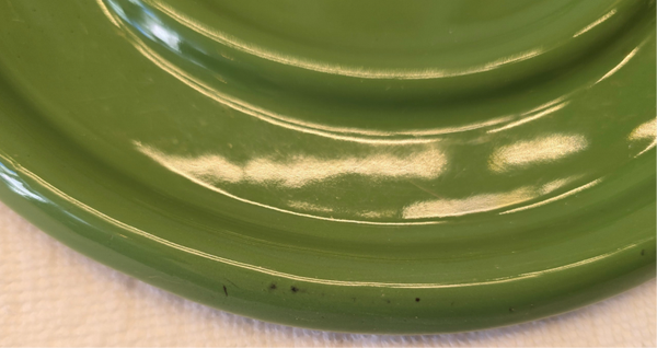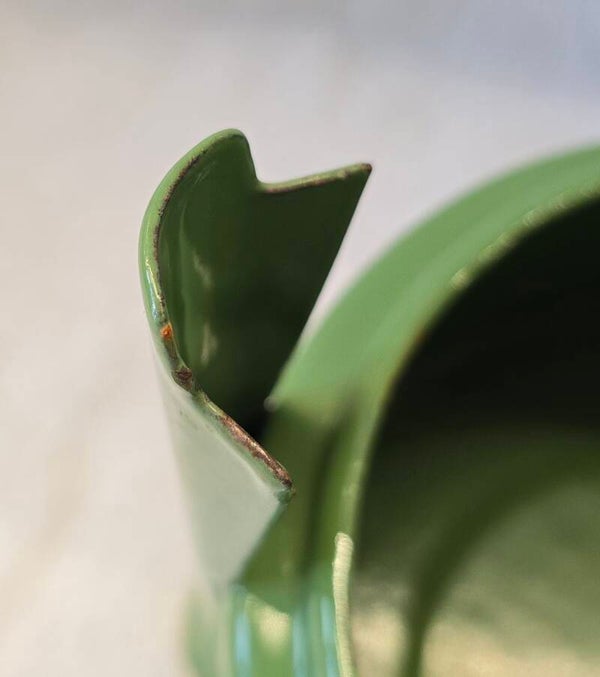 Dit petroleumstel heeft aan de binnenkant van het bovenste deel wat kleine roest plekjes. Op de onderkant van het onderste deel zitten wat kleine beschadigingen. Op het knopje van de pit zit wat waas. Dit heeft geen invloed op het functioneren van de pit. Aan de rand en aan de zijkant van de pit zitten wat roest plekjes. Onder de pit zitten wat roest plekjes. Dit heeft invloed op het functioneren van de pit. Aan de binnenkant van het onderste deel zit een beschadiging. Dit heeft geen invloed op de bodem. De buitenkant van het onderste deel is netjes dicht en kan dus niet gaan lekken. Op de zijkant van de pootjes zitten wat lichte roest plekjes. Dit heeft geen invloed op de stabiliteit. Op de pootjes zitten op de bovenkant en aan de onderkant wat roest. Dit heeft geen invloed op de stabiliteit van het petroleumstel. Op het onderbord zit op de rand van de bovenkant wat oneffeneden in het emaille. Op de onderkant van het onderbord zitten wat roest plekjes en kleine beschadigingen. Dit heeft geen invloed op de stabiliteit van het onderbord.