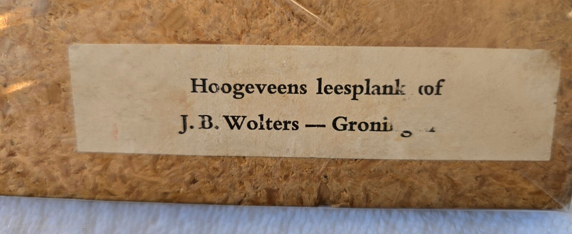 Dit oude leesplankje werd vroeger op veel scholen gebruikt om te leren lezen. Dit leesplankje stamt uit de tijd, tussen 1958 en 1965. Dit is te herkennen aan het hout. Deze leesplank werd toen namelijk gemaakt van geperst hout.