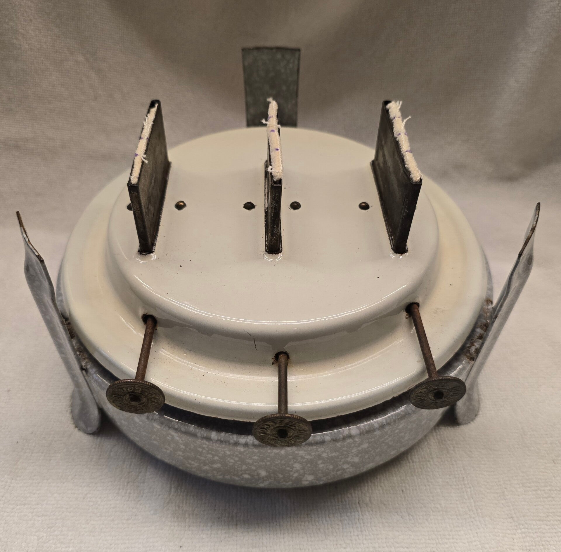 Dit petroleumstel is compleet, inclusief lont en onderbord