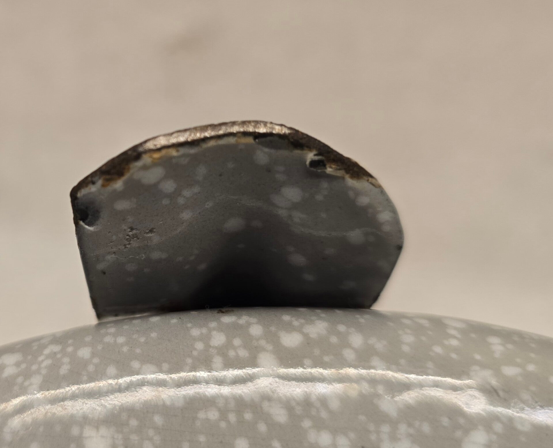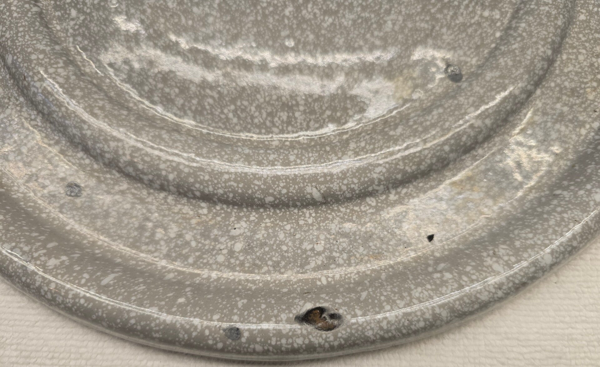 Petroleumstel grijs gespikkeld Putter (Drie pitter) met onderbord