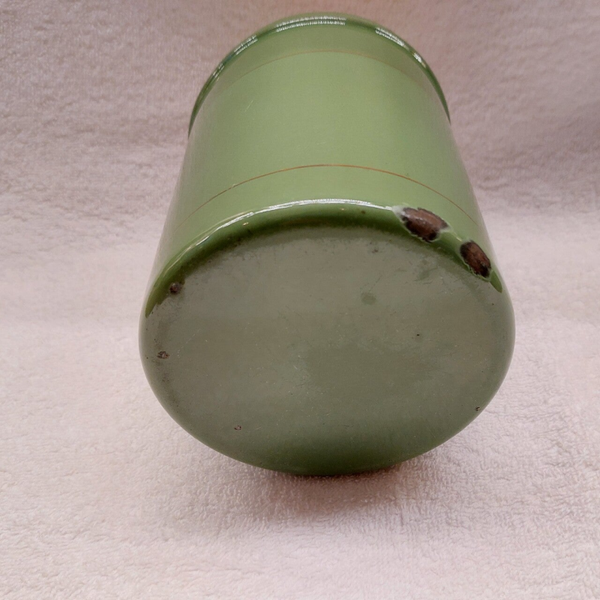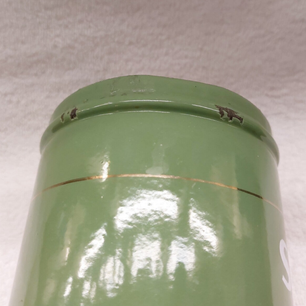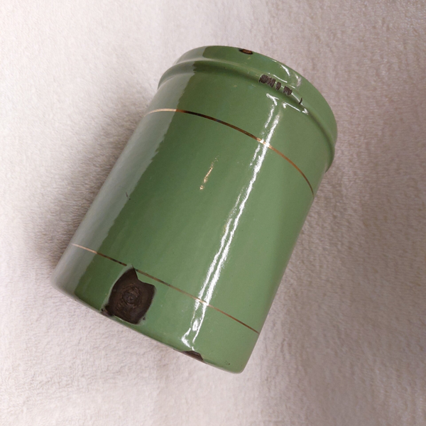 Oude bussenset lichtgroen met drie gouden biesjes.